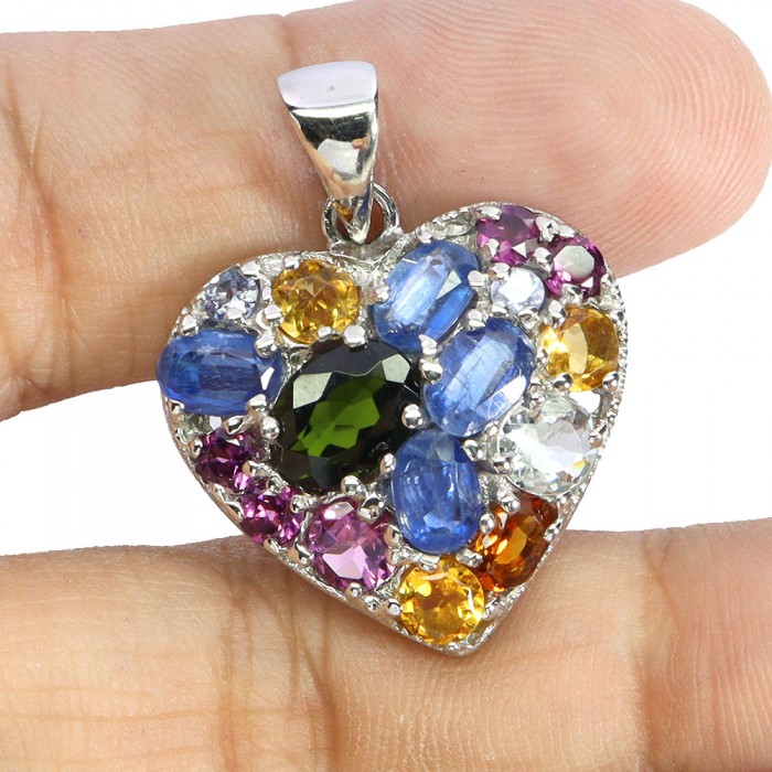 Natural Chrome Diopside, Aquamarine, Citrine, Kyanite, Rhodolite Garnet, Tanzanite 29.0 X 23.0 MM.