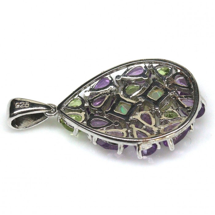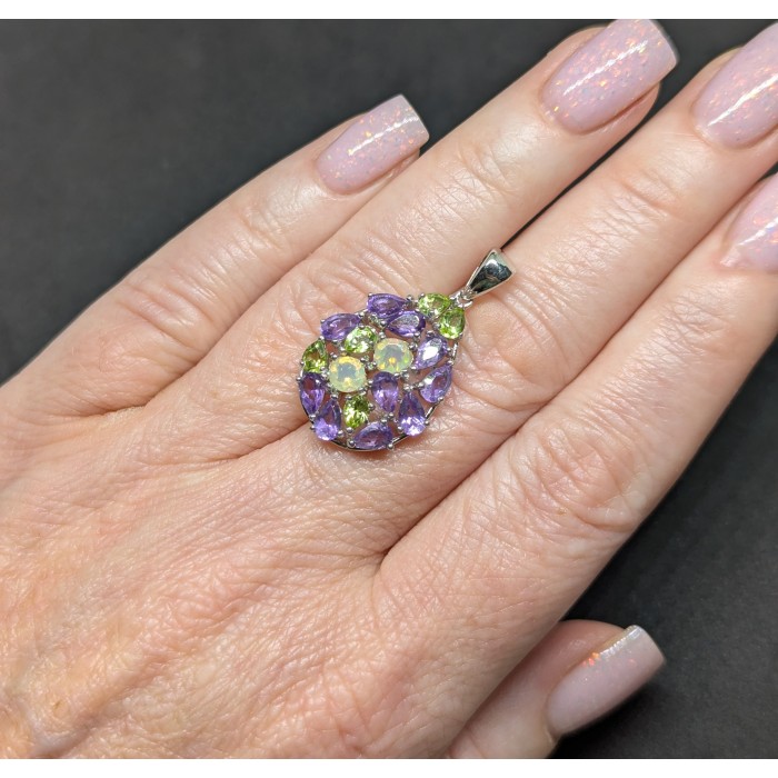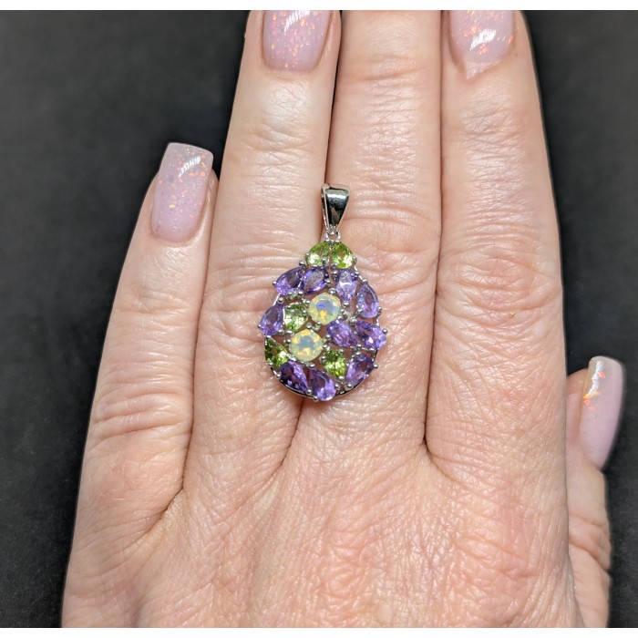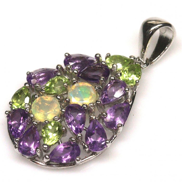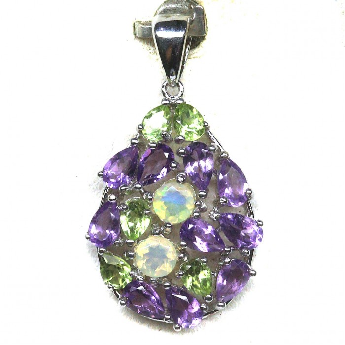 Natural Multicolor Opal, Amethyst & Peridot 18.0 x 31.0 mm.