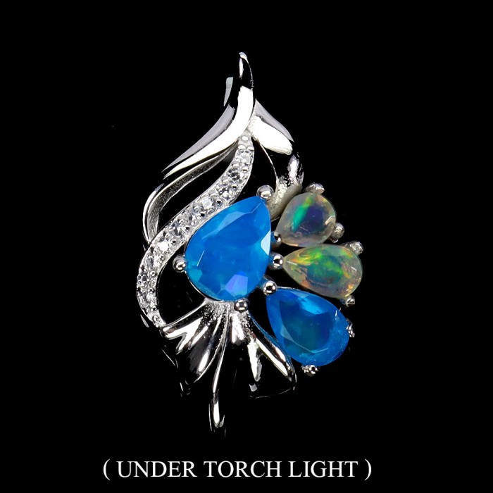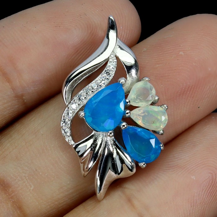 Natural Blue Opal, Fire Opal, Cz 18.0 X 16.0 MM.