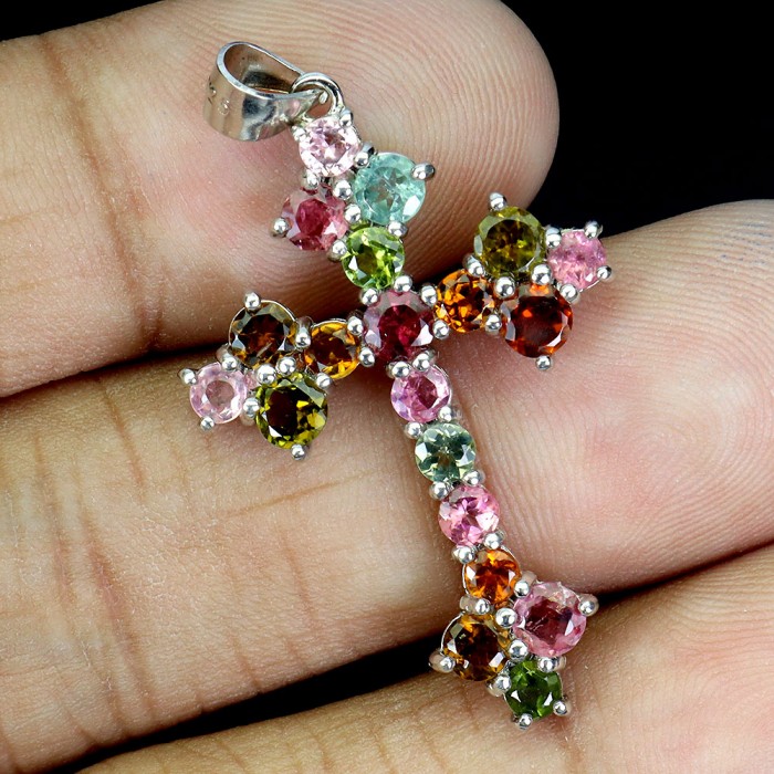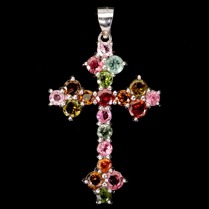 С6012Natural Fancy Color Tourmaline & Cubic Zirconia 9.8 x 25.0 mm.Вага 4,49 гр.Срібло 925 проби покрите білим золотом.Розмір каміння - 6.0 x 8.0 - 1.5 x 3.0 mm.Чистота - IF TO VVS.Обробка - UNHEATED.Походження - BRAZIL...