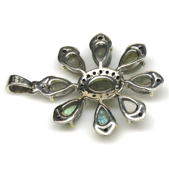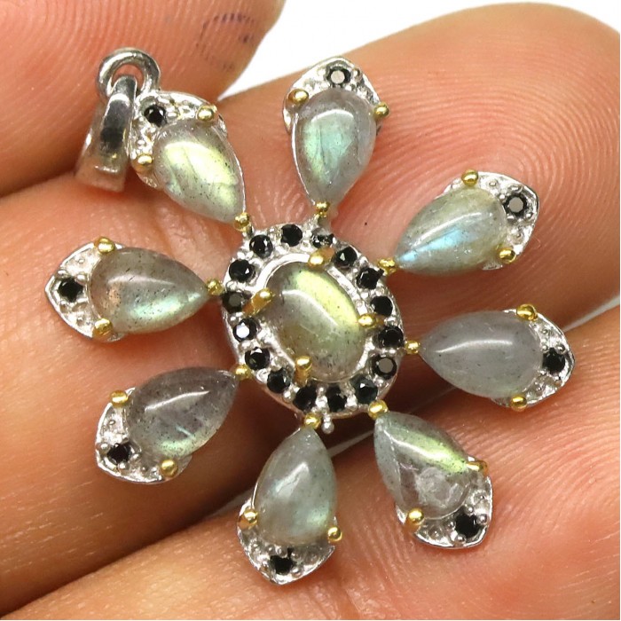 Natural Blue Rainbow Gray Labradorite, Spinel & Zircon 25.0 x 34.0 mm.