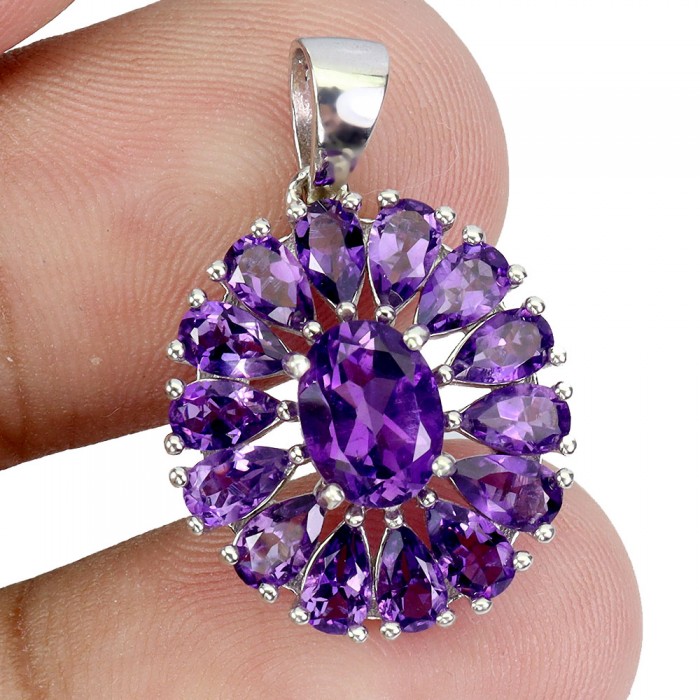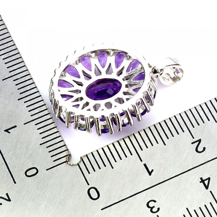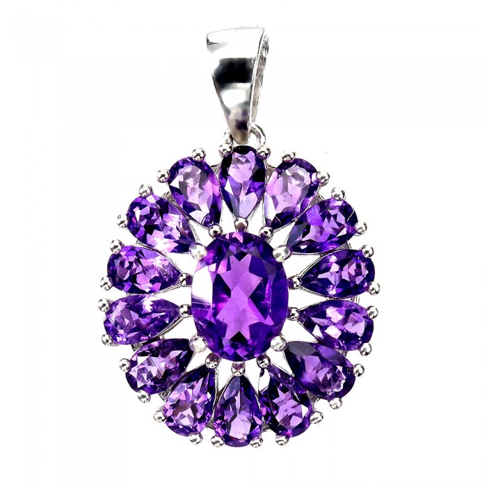 К6393Natural Amethyst 19.0 X 17.0 MM.Розмір 18.6.Вага 5.05 гр.Срібло 925 проби покрите білим золотом.Розмір каміння - 5.0 X 3.0 TO 8.0 X 6.0 MM.Чистота - If To Vvs.Обробка - Unheated.Походження - Uruguay...