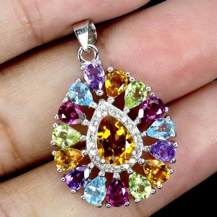 Natural Amethyst, Citrine, Peridot, Rhodolite Garnet, Sky Blue Topaz, Cz 26.0 X 17.0 MM.