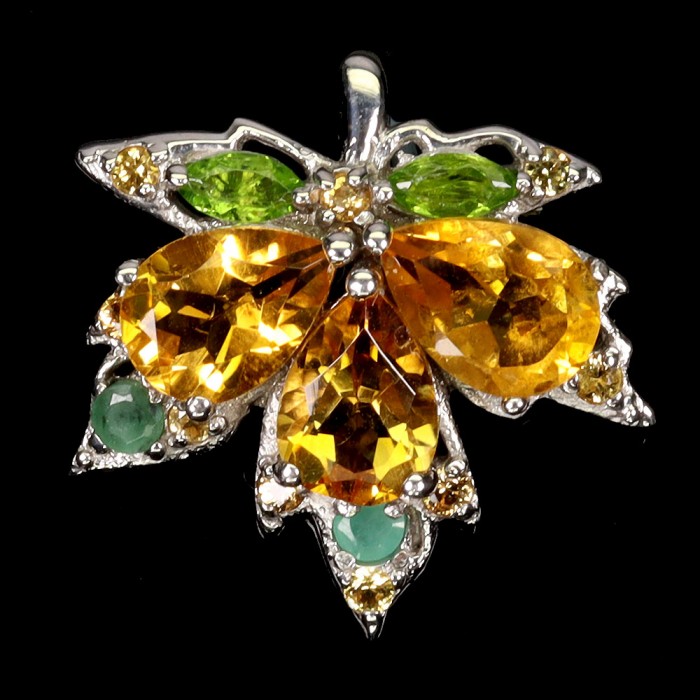 П6296Natural Amethyst, Aquamarine, Citrine, Iolite, Mozambique Garnet, Peridot, Rhodolite Garnet, Sky Blue Topaz 25.0 X 17.0 MM.Вага 2.9 гр.Срібло 925 проби покрите білим золотом.Розмір каміння - 2.0 TO 6.0 X 3.0 MM.Чистота - If To Vvs.Обробка - Unheated.Походження - Brazil...