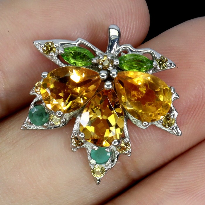 Natural Citrine, Chrome Diopside, Emerald, Sapphire 18.0 X 18.0 MM.