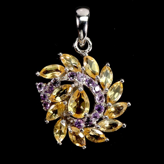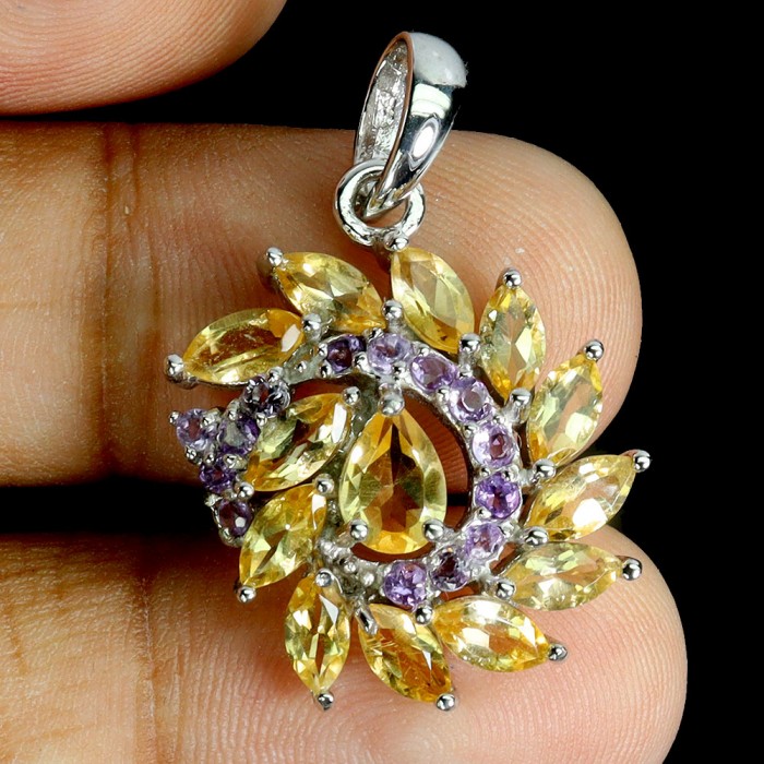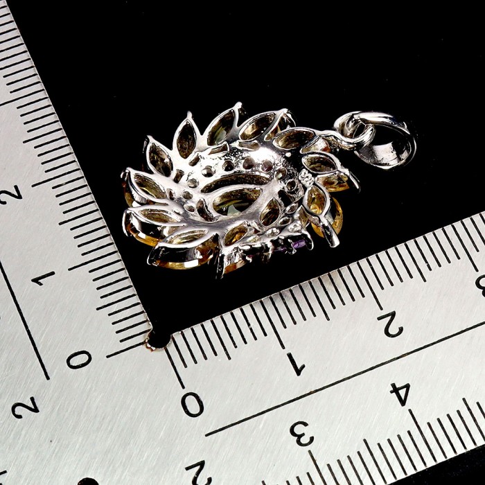 К6683Natural Peridot, Citrine, Emerald 20.0 X 16.0 MM.Розмір 18.Вага 3.83 гр.Срібло 925 проби покрите білим золотом.Розмір каміння - 1.5 TO 6.0 MM. Чистота - If To Vvs.Обробка - Unheated.Походження - Pakistan...
