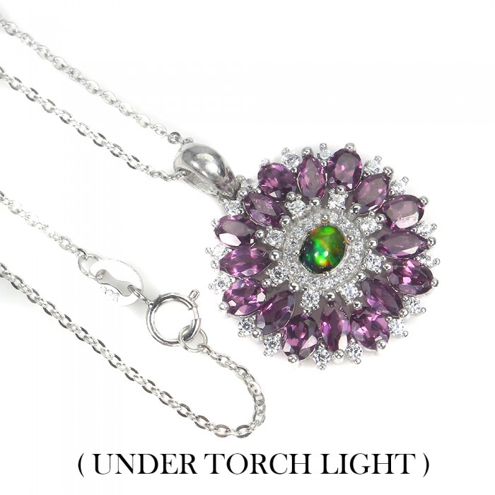 Natural Black Opal, Rhodolite Garnet, Cz 441.0 Х 28.0 X 21.0 MM.