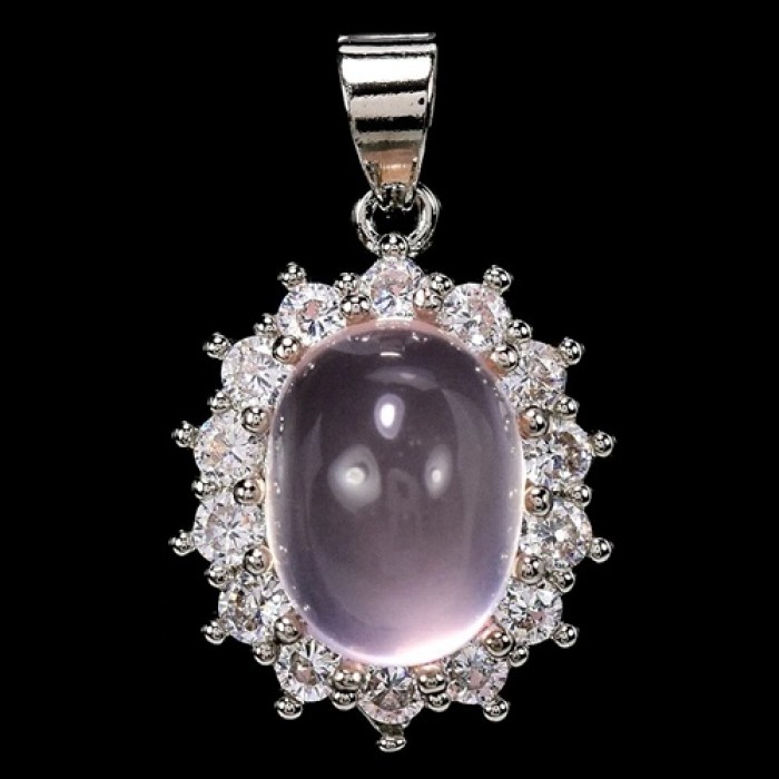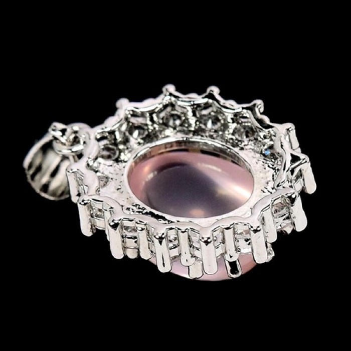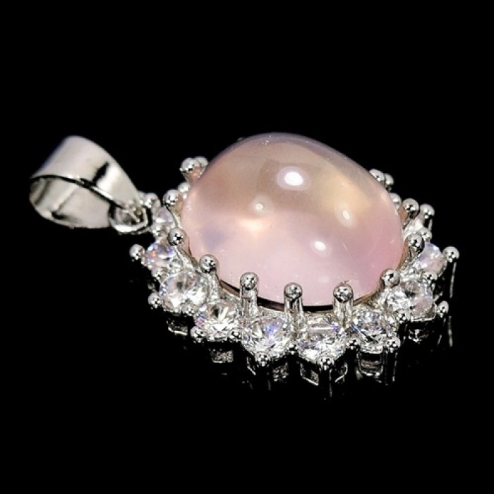 NATURAL AAA ROSE QUARTZ & WHITE CZ 15 x 24 mm.