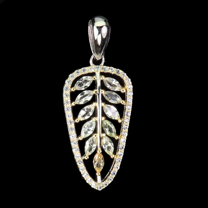 С6447Natural London Blue Topaz & Zircon 10.0 x 16.2 mm.Вага 4,24 гр.Срібло 925 проби покрите білим золотом.Розмір каміння - 5.0 x 7.0 - 1.3 mm.Чистота - If.Обробка - Irradiated.Походження - Africa...