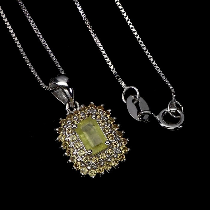 С6336Natural Apatite Cz 12.0 X 10.0 MM.Вага 2.36 гр.Срібло 925 проби покрите білим золотом.Розмір каміння - 8.0 X 6.0 MM., CZ 1.0 MM.Чистота - If To Vvs.Обробка - Unheated.Походження - Africa. ..