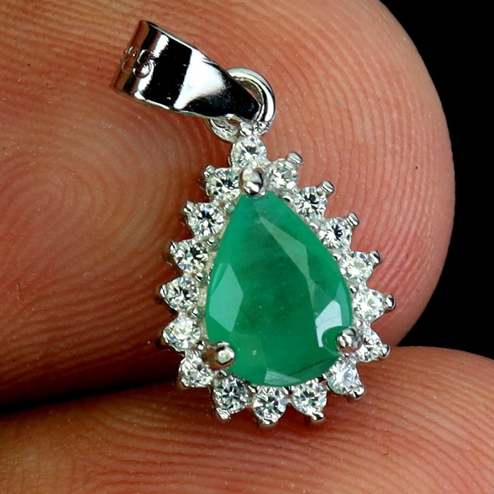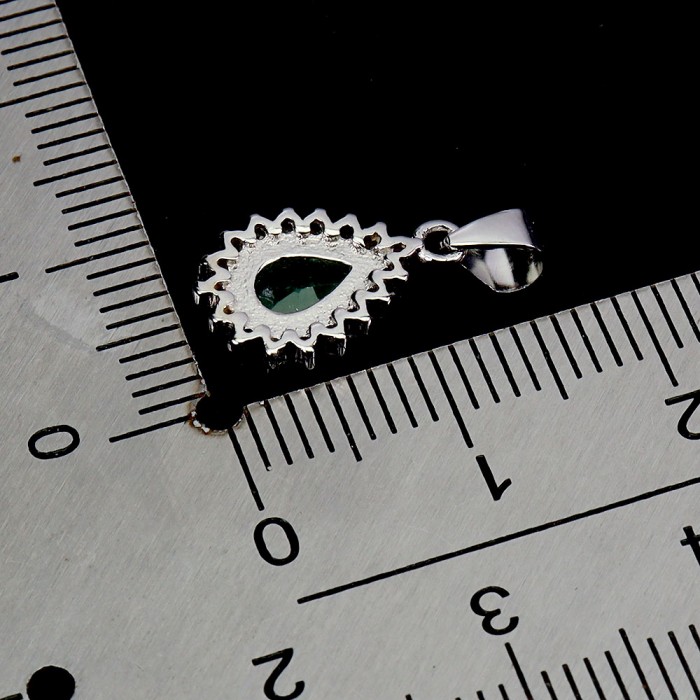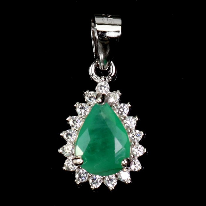 П6438Natural Emerald 17.0 X 9.0 MM.Вага 0.92 гр.Срібло 925 проби покрите білим золотом.Розмір каміння - 7.0 X 5.0 MM., CZ 1.5 MM.Чистота - Transparent.Обробка - Unheated.Походження - Brazil...