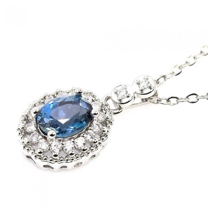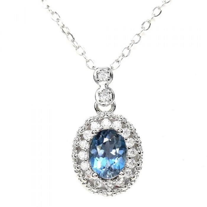 С6804NATURAL AAA LONDON BLUE TOPAZ & WHITE CZ 11 x 12 mm.Вага 2.75 гр.Срібло 925 проби покрите білим золотом.Розмір каміння - 7 x 5 mm.Чистота - IF TO VVS.Обробка - IRRADIATED.Походження - AFRICA...