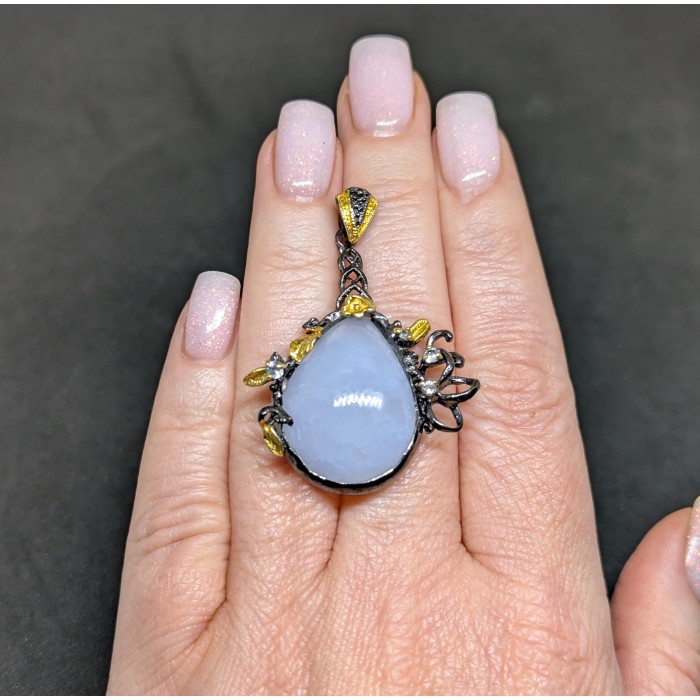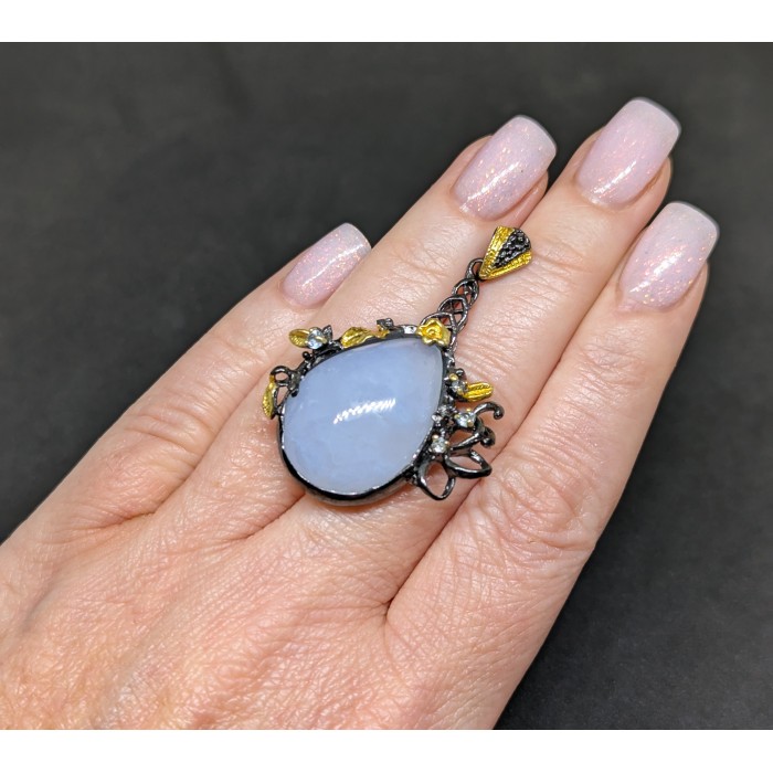 Handmade! Natural Chalcedony Topaz Cubic Zirconia 48.0 Х 34.0 ММ.