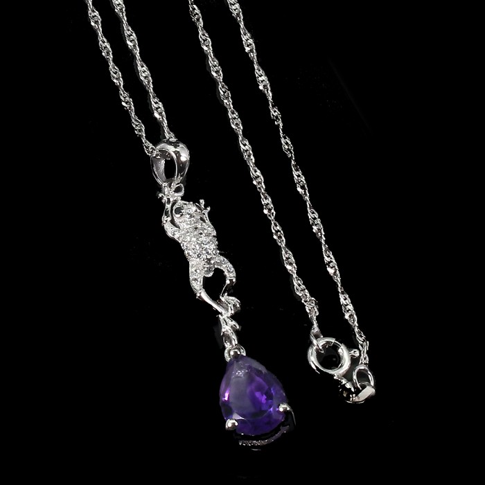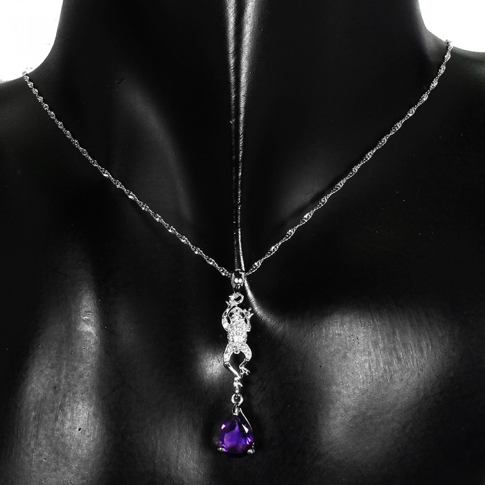 П5346Natural Sky Blue Topaz, Amethyst 450.0 Х 17.0 Х 28.0 ММ.Вага 3.88 гр.Срібло 925 проби покрите білим золотом.Розмір каміння - 5.0 X 3.0 TO 7.0 X 5.0 MM.Чистота - If To Vvs.Обробка - Irradiated.Походження - Africa...