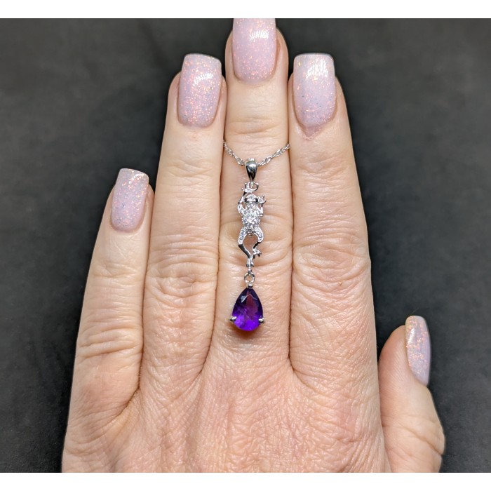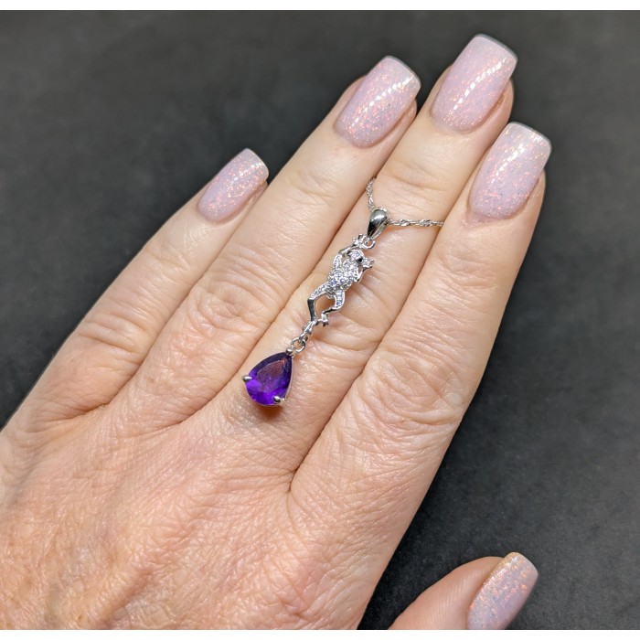П5145Natural Amethyst Cz 441.0 Х 23.0 X 12.0 MM.Вага 3.55 гр.Срібло 925 проби покрите білим золотом.Розмір каміння - 11.0 X 9.0 MM., CZ 1.0 TO 1.5 MM.Чистота - If To Vvs.Обробка - Unheated.Походження - Brazil. ..