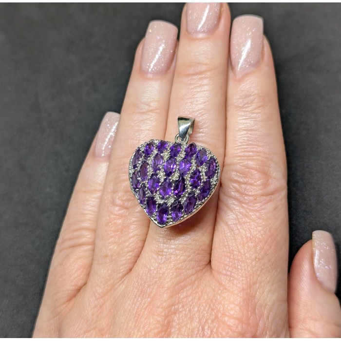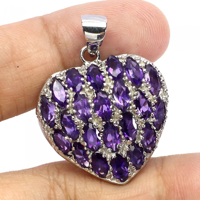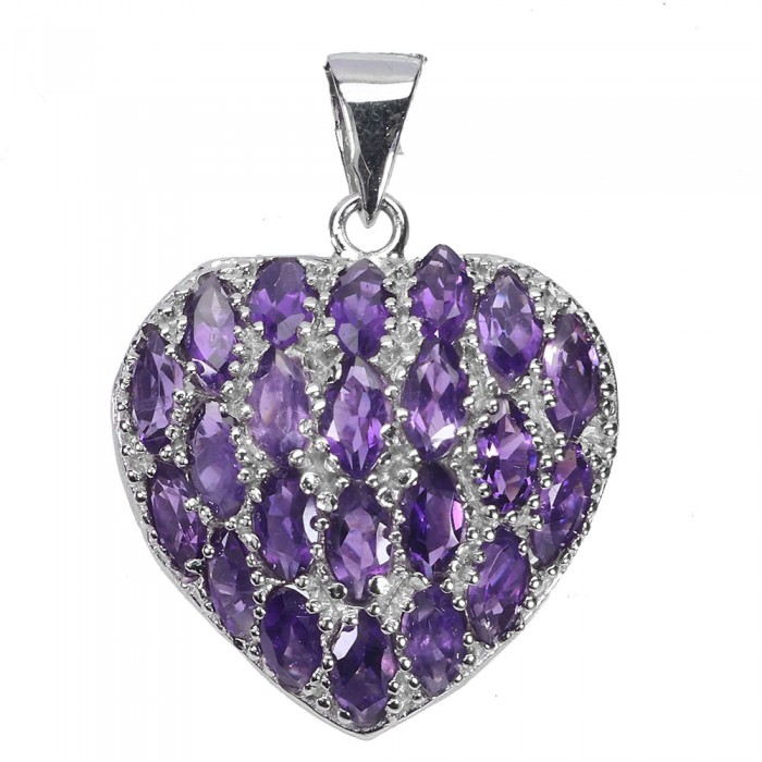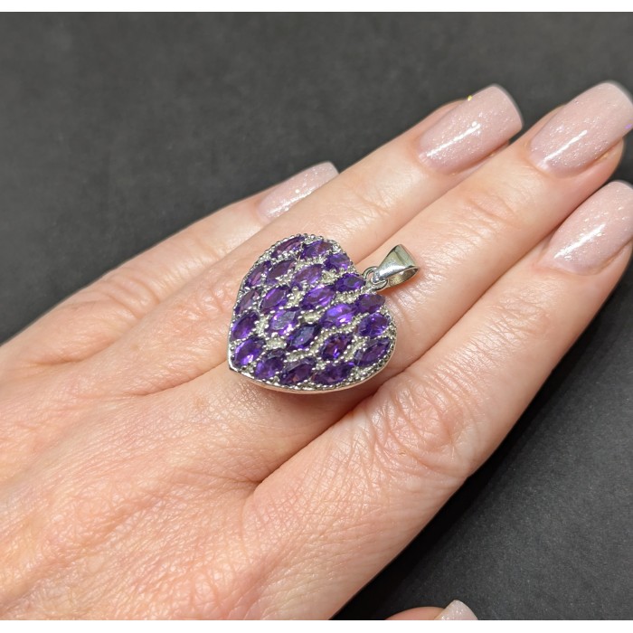 П5865Natural Amethyst 33.0 X 25.0 MM.Вага 7.1 гр.Срібло 925 проби покрите білим золотом.Розмір каміння - 6.0 X 3.0 MM.Чистота - If To Vvs.Обробка - Unheated.Походження - Uruguay...