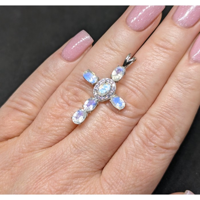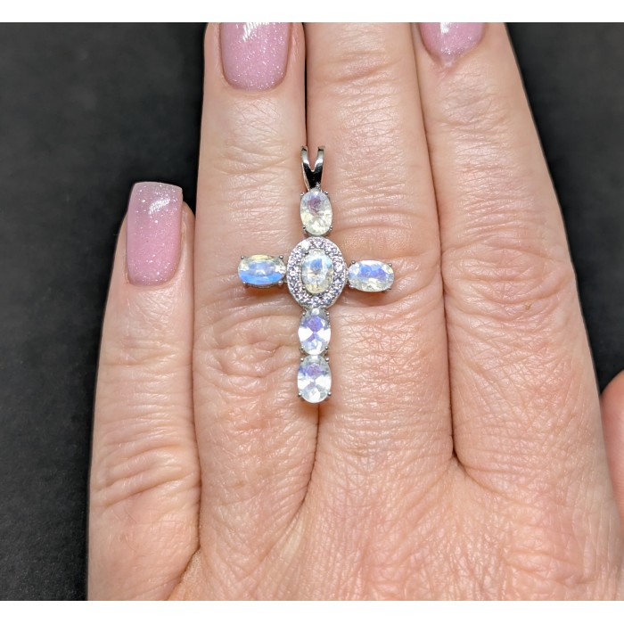 П6130Natural Moonstone Cz 42.0 X 24.0 MM.Вага 2.81 гр.Срібло 925 проби покрите білим золотом.Розмір каміння - 6.0 X 4.0 MM., CZ 2.5 MM.Чистота - Transparent.Обробка - Unheated.Походження - India...