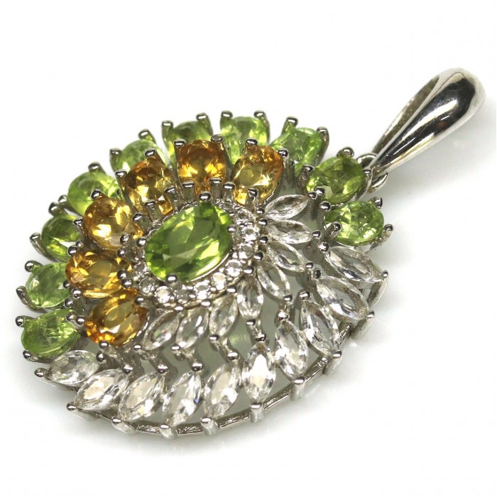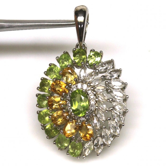 Natural Green Peridot, Citrine & Topaz 21.0 x 34.0 mm.