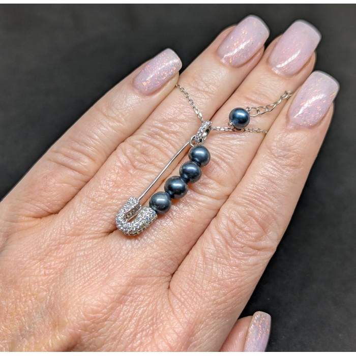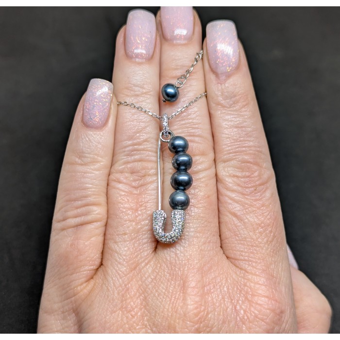 П5843Natural Ruby, Pearl 450.0 Х 21.0 Х 24.0 ММ.Вага 4.16 гр.Срібло 925 проби покрите білим і жовтим золотом.Розмір каміння - 1.0 MM., PEARL 9.0 MM.Чистота - Transparent.Обробка - Heated.Походження - Myanmar...