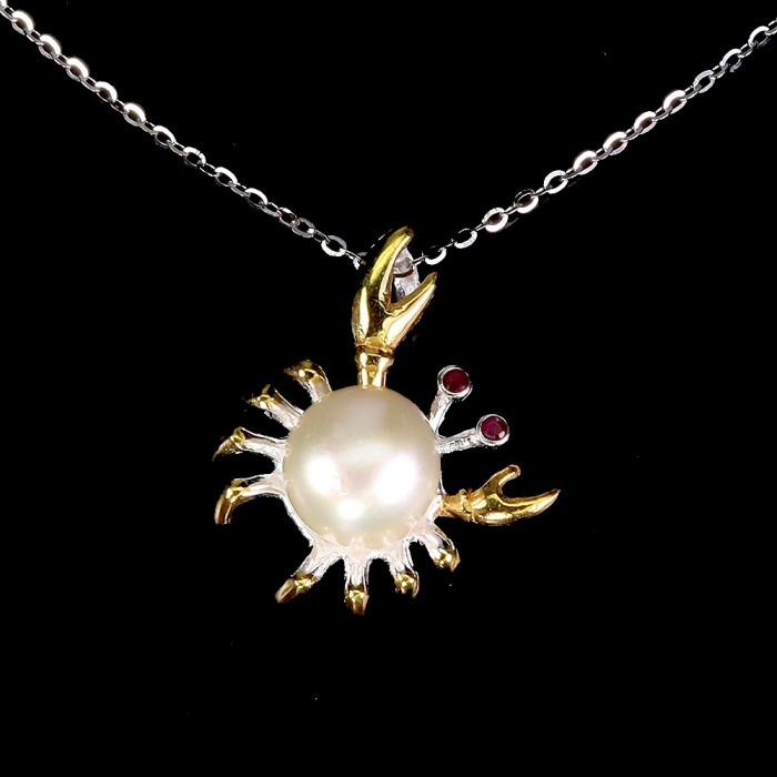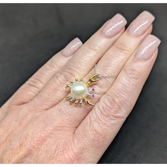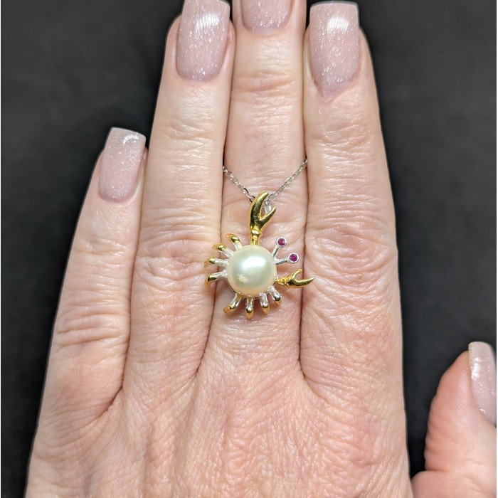 П5775Natural Pearl, Ruby 26.0 X 15.0 MM.Вага 5.18 гр.Срібло 925 проби покрите жовтим золотом.Розмір каміння - 2.0 MM., PEARL 18.0 X 13.0 MM.Чистота - Transparent.Обробка - Heated.Походження - Myanmar...