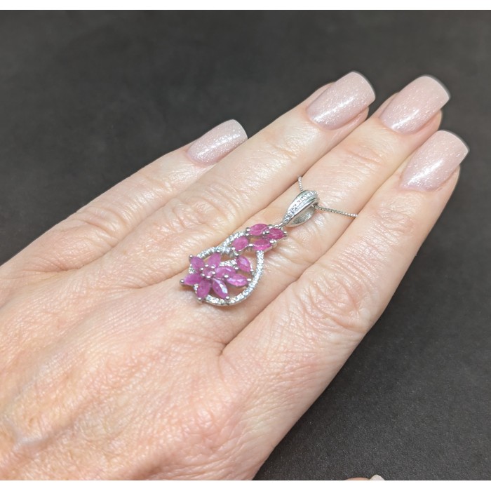 П5484Natural Mozambique Garnet Cz 450.0 Х 19.0 Х 25.0 ММ.Вага 4.81 гр.Срібло 925 проби покрите білим золотом.Розмір каміння - 1.0 TO 5.0 X 2.5 MM.Чистота - If To Vvs.Обробка - Unheated.Походження - Africa...