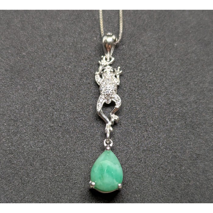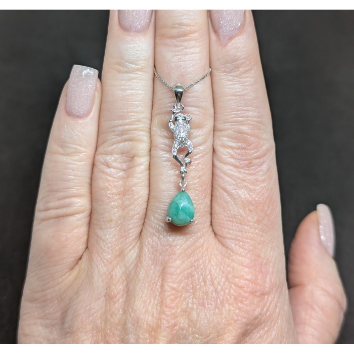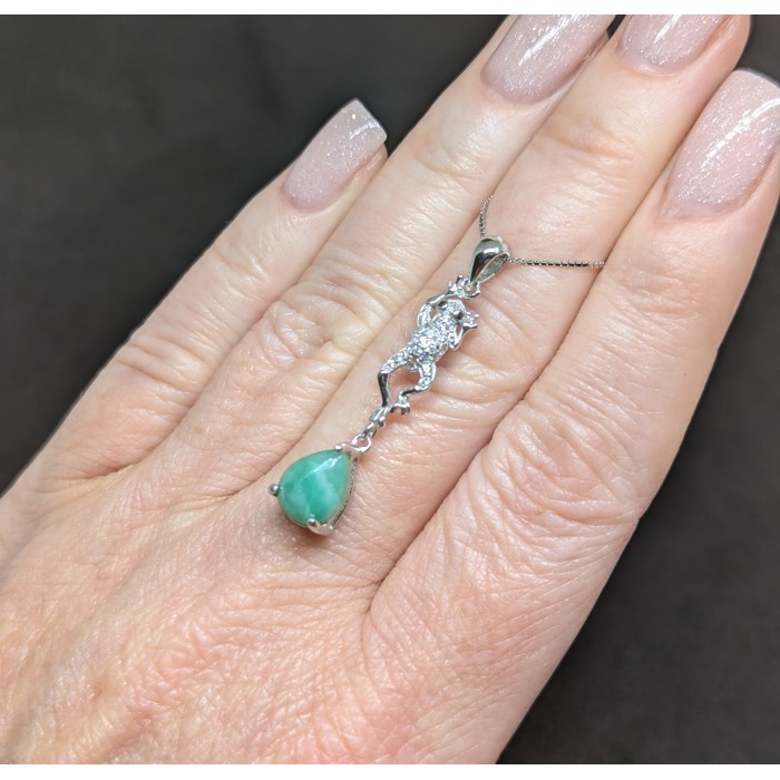П4480Natural Green Agate & White Cubic Zirconia 14.4 x 32.0 mm.Вага 3,46 гр.Срібло 925 проби покрите білим золотом.Нема штампа 925.Розмір каміння - 13.0 x 17.0 - 3.5 mm.Чистота - TRANSLUCENT.Обробка - UNHEATED.Походження - AFRICA...