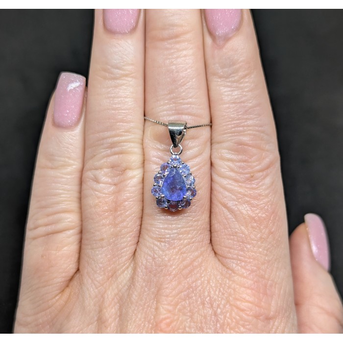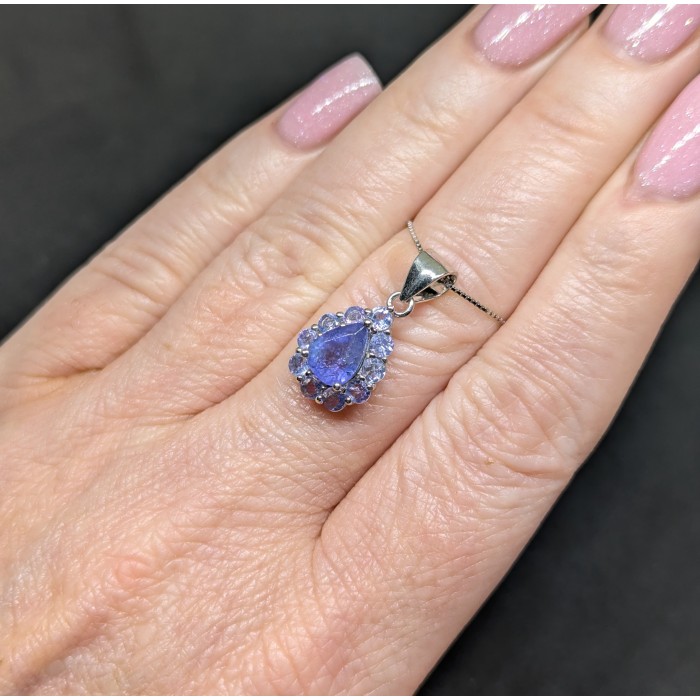 П5740Natural Tanzanite Cz 450.0 Х 10.0 Х 17.0 МM.Вага 2.42 гр.Срібло 925 проби покрите білим золотом.Розмір каміння - 1.0 TO 7.0 MM.Чистота - Transparent.Обробка - Unheated.Походження - Tanzania - Africa...