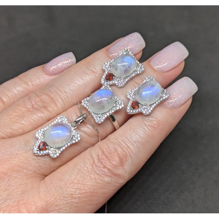 Natural Moonstone, Mozambique Garnet, Cz 450.0 Х 13.0 Х 25.0 ММ.