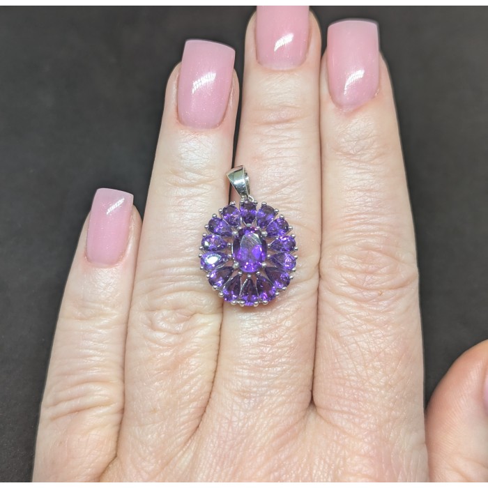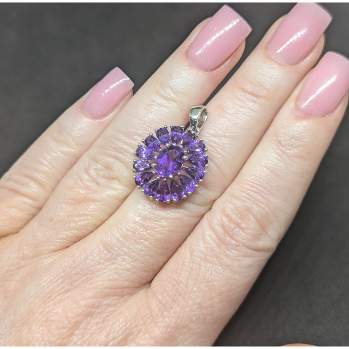 П5879Natural Amethyst 33.0 X 25.0 MM.Вага 6.91 гр.Срібло 925 проби покрите білим золотом.Розмір каміння - 6.0 X 3.0 MM. Чистота - If To Vvs.Обробка - Unheated.Походження - Uruguay...