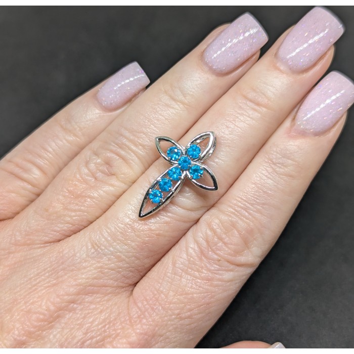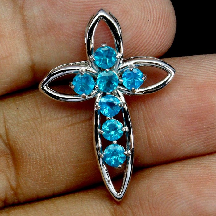 П5577Natural Sky Blue Topaz 420.0 Х 11.0 Х 26.0 ММ.Вага 5.04 гр.Срібло 925 проби покрите білим золотом.Розмір каміння - 2.0 TO 14.0 X 9.0 MM.Чистота - If To Vvs.Обробка - Irradiated.Походження -  Africa...