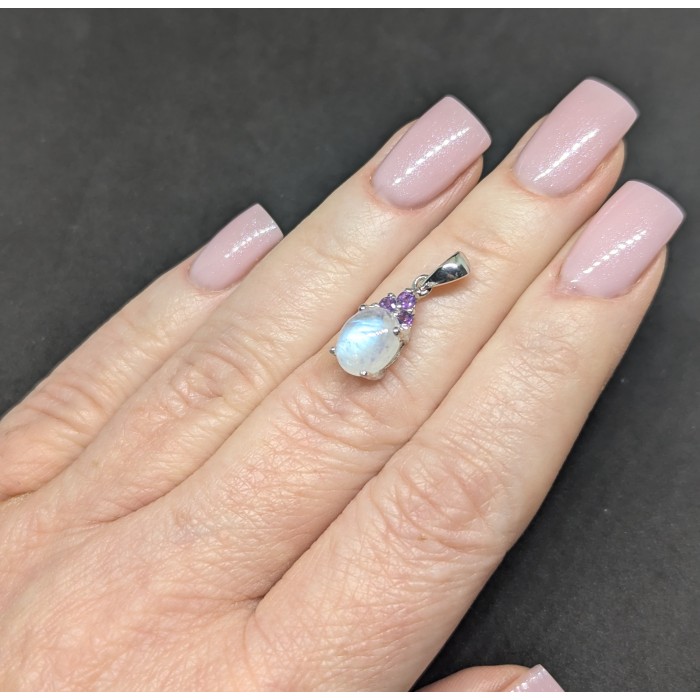 П6552Natural Purple Iolite & White Zircon 12.4 x 31 mm.Вага 2,42 гр.Срібло 925 проби покрите білим золотом.Розмір каміння - 4 x 6 - 1.2 mm.Чистота - IF TO VVS.Обробка - UNHEATED.Походження - AFRICA...