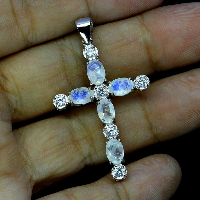 П6031Natural Moonstone Cz 34.0 X 20.0 MM.Вага 2.55 гр.Срібло 925 проби покрите білим золотом.Розмір каміння - 6.0 X 4.0 MM., CZ 1.5 MM.Чистота - If.Обробка - Unheated.Походження - India...
