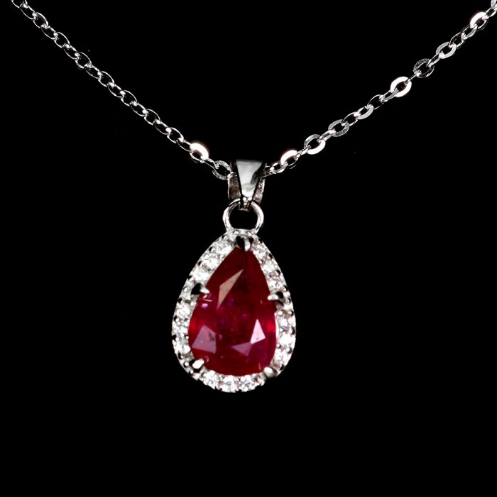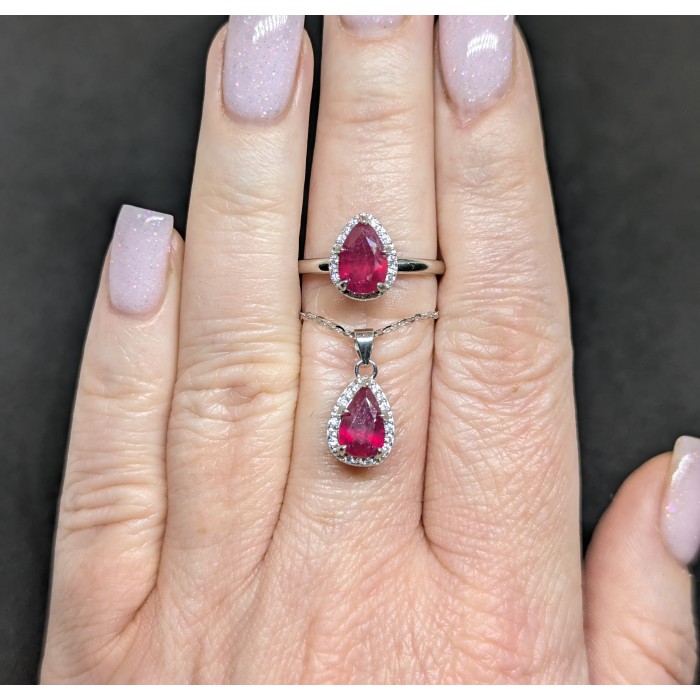 П6324Natural Ruby 18.0 X 9.0 MM.Вага 1.56 гр.Срібло 925 проби покрите білим золотом.Розмір каміння - 8.0 X 6.0 MM., CZ 1.0 MM.Чистота - Transparent.Обробка - Heated.Походження - Madagascar...