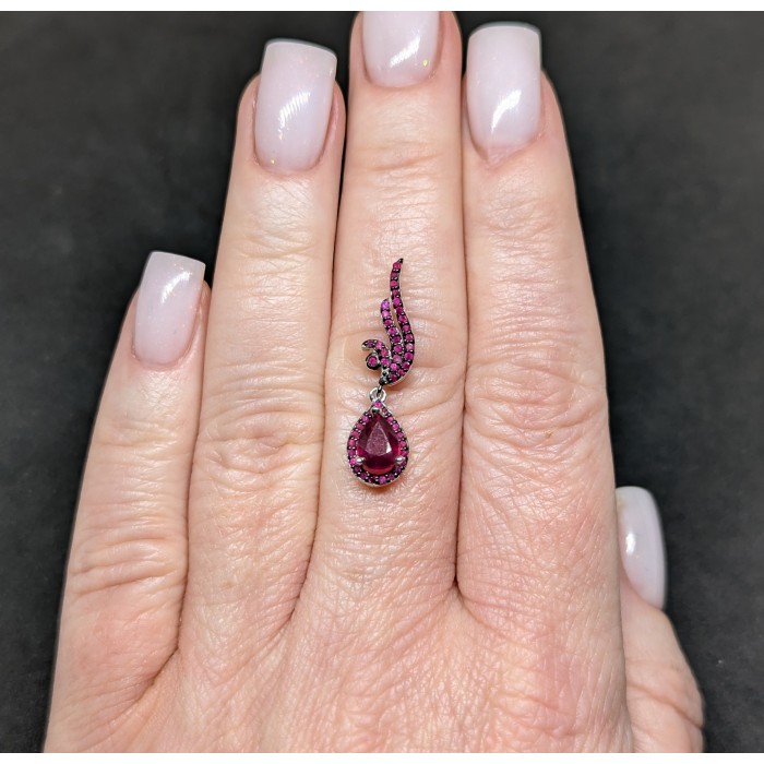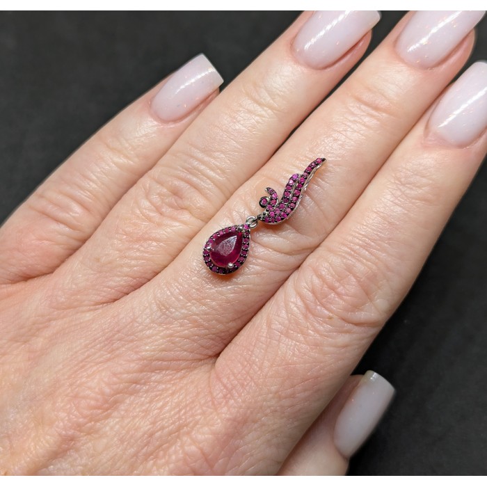 П6241Natural Ruby 450.0 Х 8.0 Х 17.0 ММ.Вага 2.58 гр.Срібло 925 проби покрите білим золотом.Розмір каміння - 9.0 X 6.0 MM., CZ 1.0 MM.Чистота - Transparent.Обробка - Heated.Походження - Madagascar...