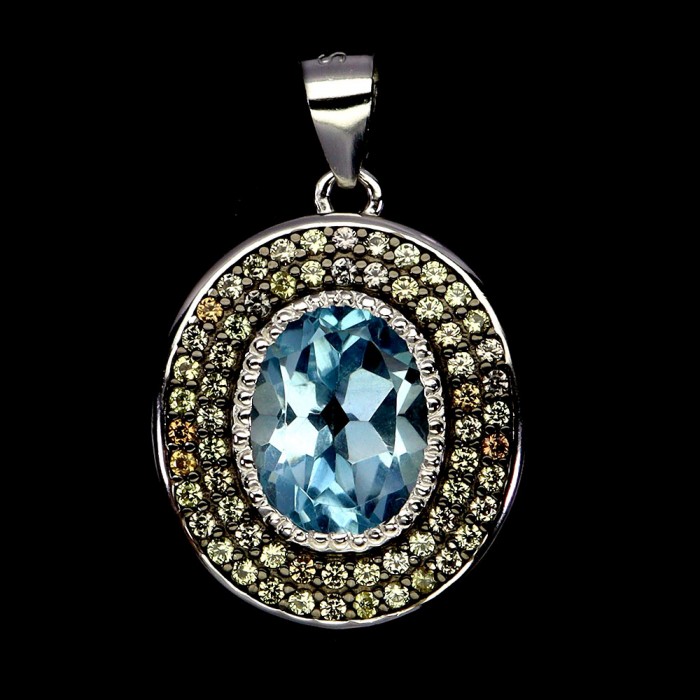 П6242Natural Apatite 27.0 X 19.0 MM.Вага 2.25 гр.Срібло 925 проби покрите білим золотом.Розмір каміння - 3.0 MM.Чистота - If To Vvs.Обробка - Unheated.Походження - Africa...