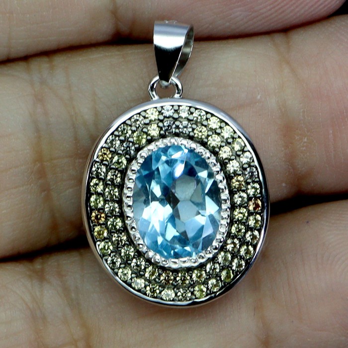 П5577Natural Sky Blue Topaz 420.0 Х 11.0 Х 26.0 ММ.Вага 5.04 гр.Срібло 925 проби покрите білим золотом.Розмір каміння - 2.0 TO 14.0 X 9.0 MM.Чистота - If To Vvs.Обробка - Irradiated.Походження - Africa...