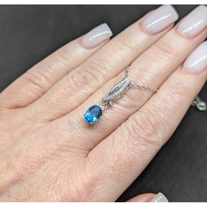 П6329Natural Morganite Cz 15.0 X 7.0 MM.Вага 1.16 гр.Срібло 925 проби покрите білим золотом.Розмір каміння - 7.0 X 5.0 MM., CZ 1.0 MM.Чистота - If To Vvs.Обробка - Unheated.Походження - Madagascar...