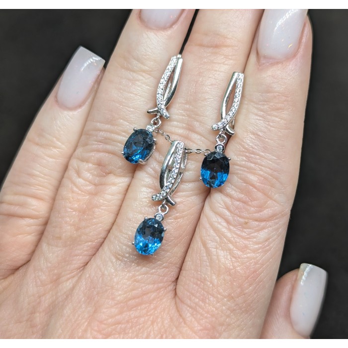 П6259Natural Iolite, Zircon, Sapphire 8.8 x 21 mm.Вага 1,84 гр.Срібло 925 проби покрите чорним родієм.Розмір каміння - 6 x 8 - 2.5 mm.Чистота - IF TO VVS.Обробка - UNHEATED.Походження - AFRICA...