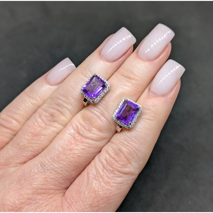 С6140Natural Purple Amethyst 10.2 x 23.0 mm.Вага 5,81 гр.Срібло 925 проби покрите білим і жовтим золотом.Розмір каміння - 8.0 x 10.0 - 2.0 mm.Чистота - If To Vvs.Обробка - Unheated.Походження - Brazil...