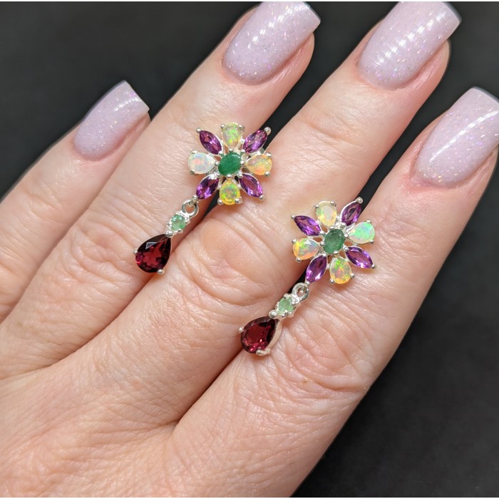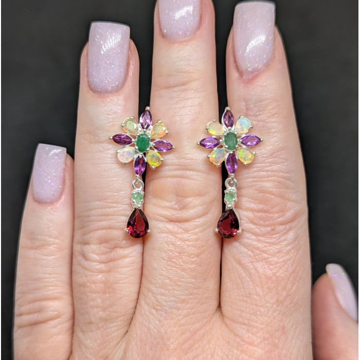 Natural Rhodolite Garnet, Emerald, Fire Opal 30.0 X 15.0 MM.