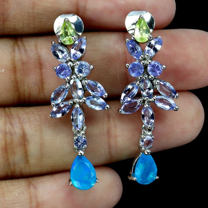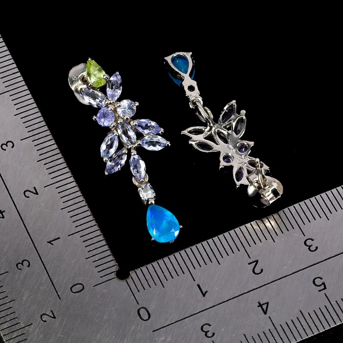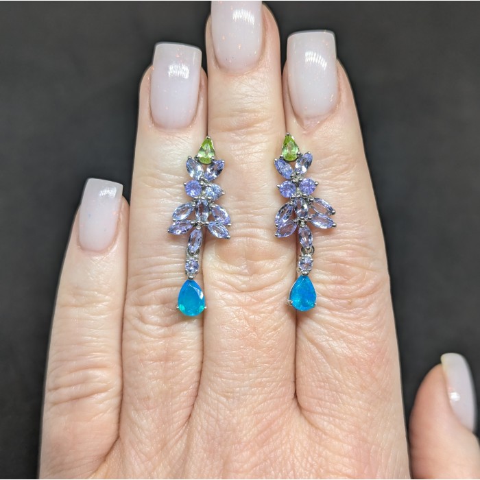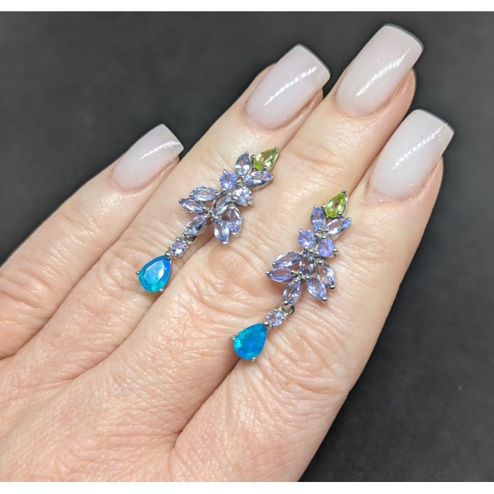 Сережки. Натуральний опал, перидот і танзаніт. Срібло 925. С6332