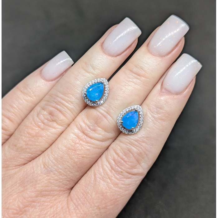 С6092Natural Fire Opal Cz 17.0 X 9.0 MM.Вага 3.61 гр.Срібло 925 проби покрите білим золотом.Розмір каміння - 9.0 X 6.0 MM., CZ 1.5 MM.Чистота - If.Обробка - Unheated.Походження - Ethiopia...