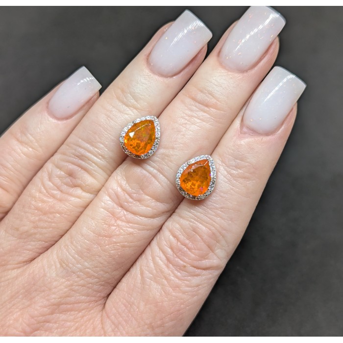 С6307Natural Fire Opal, Blue Opal 10.0 X 10.0 MM.Вага 2.9 гр.Срібло 925 проби покрите білим золотом.Розмір каміння - 2.0 TO 4.0 X 3.0 MM.Чистота - If.Обробка - Unheated.Походження - Ethiopia...