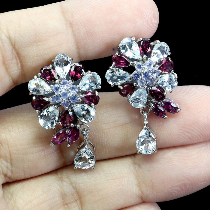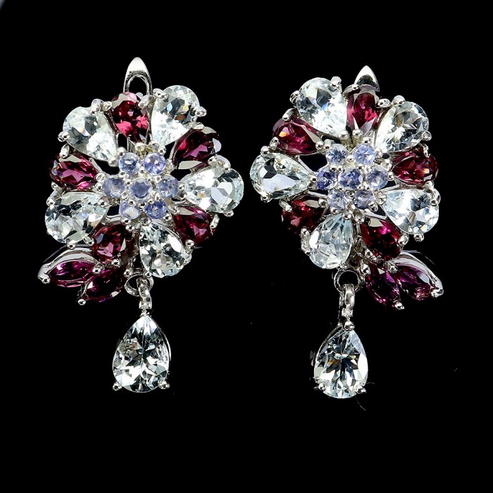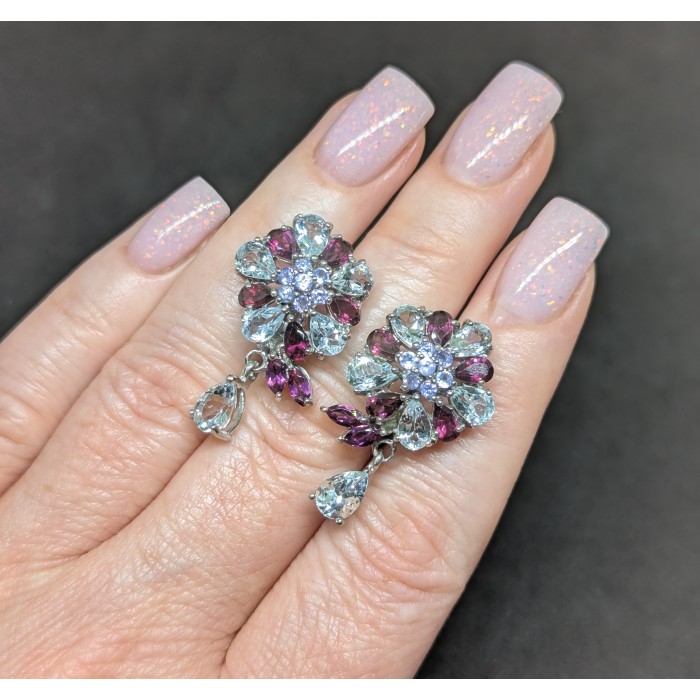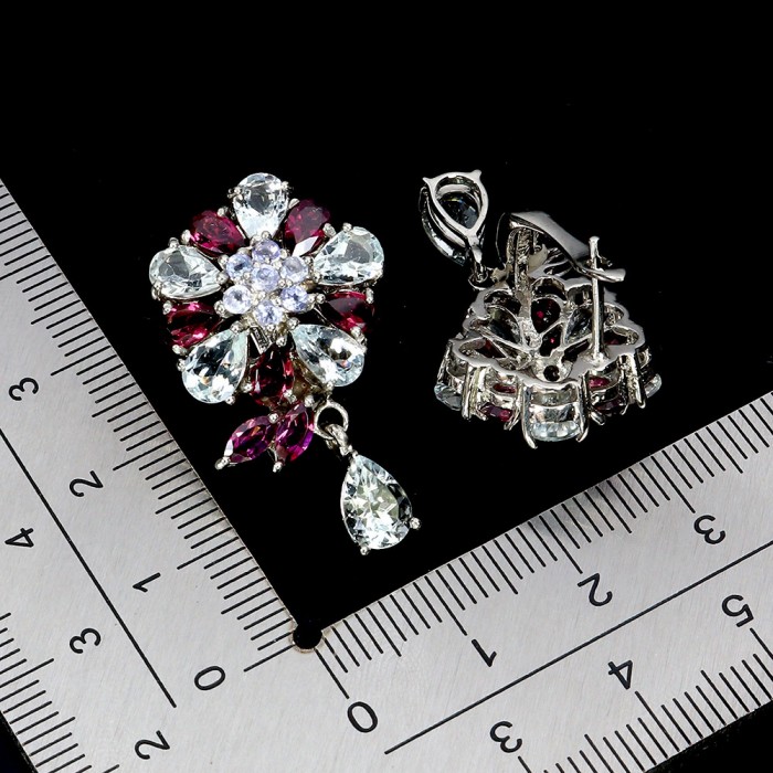 Natural Aquamarine, Rhodolite Garnet, Tanzanite 30.0 X 17.0 MM.
