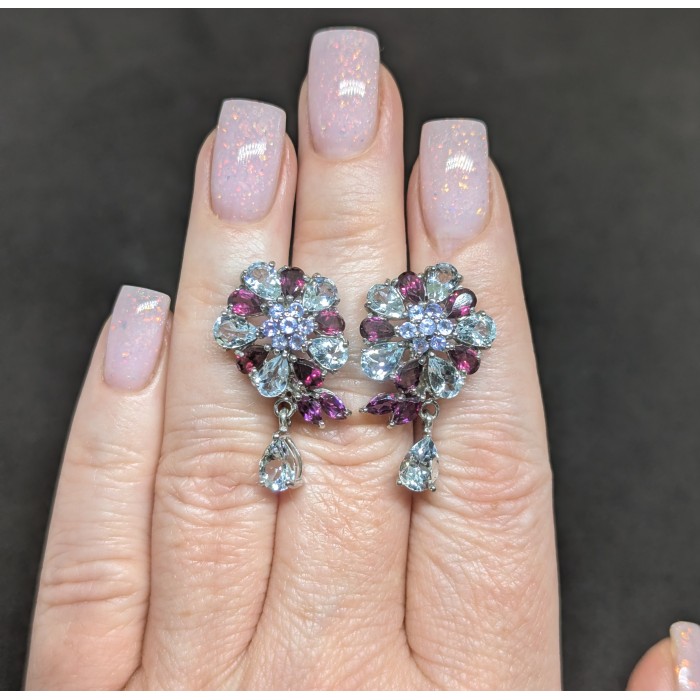 С2018Handmade! Natural Aquamarine Amethyst Cubic Zirconia 27.0 Х 47.0 ММ.Вага 14.7 гр.Серібло 925 проби покрите білим і жовтим золотом.Розмір каміння - 15Х15 MM.Чистота - IF TO VVS.Обробка - UNHEATED.Походження - AFRICA...