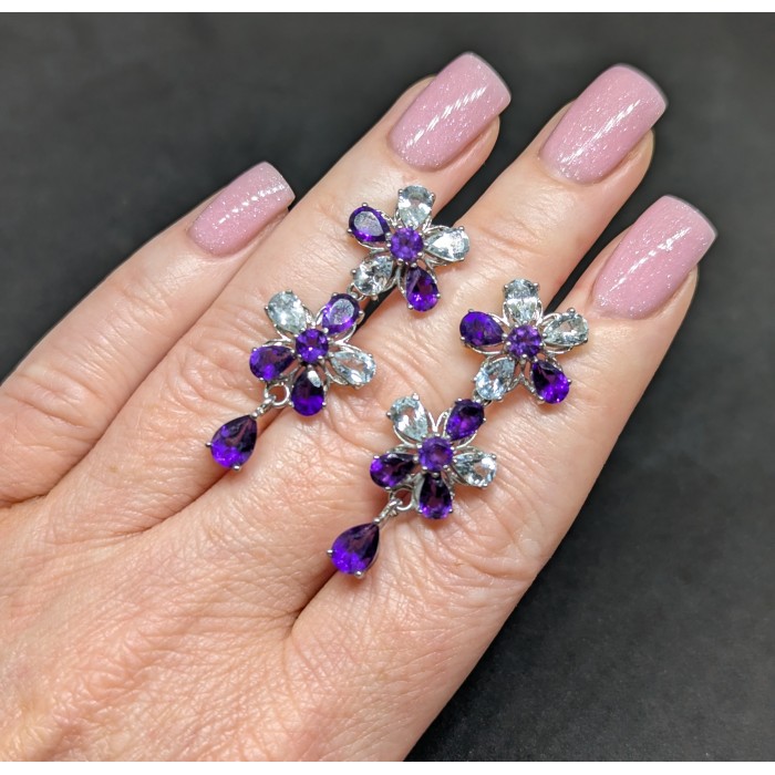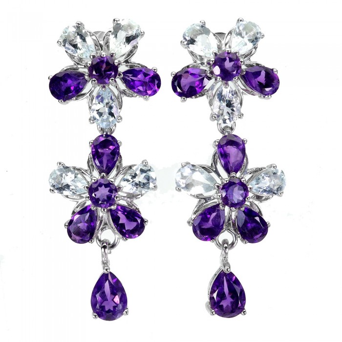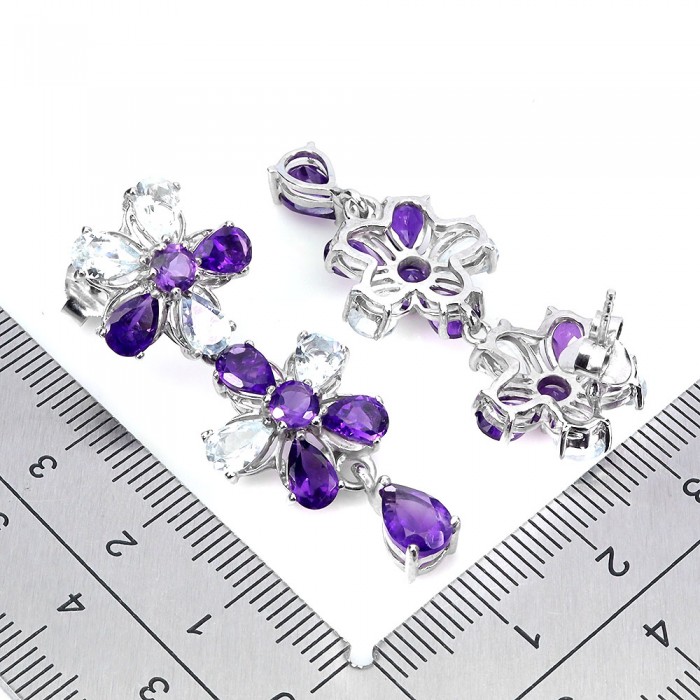 С5295Natural Aquamarine, Rhodolite Garnet 20.0 X 20.0 MM.Вага 7 гр.Срібло 925 проби покрите білим золотом.Розмір каміння - 4.0 X 2.0 TO 7.0 X 5.0 MM.Чистота - If To Vvs.Обробка - Unheated.Походження - Brazil...