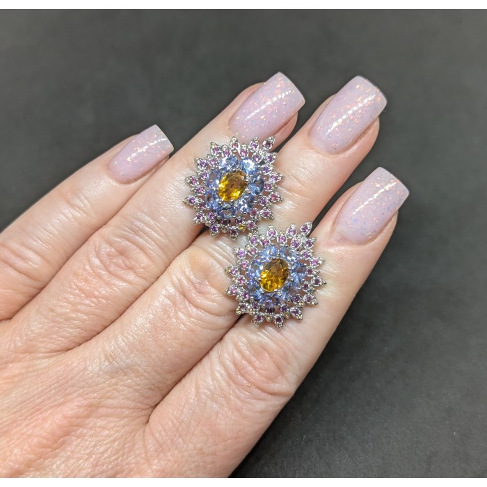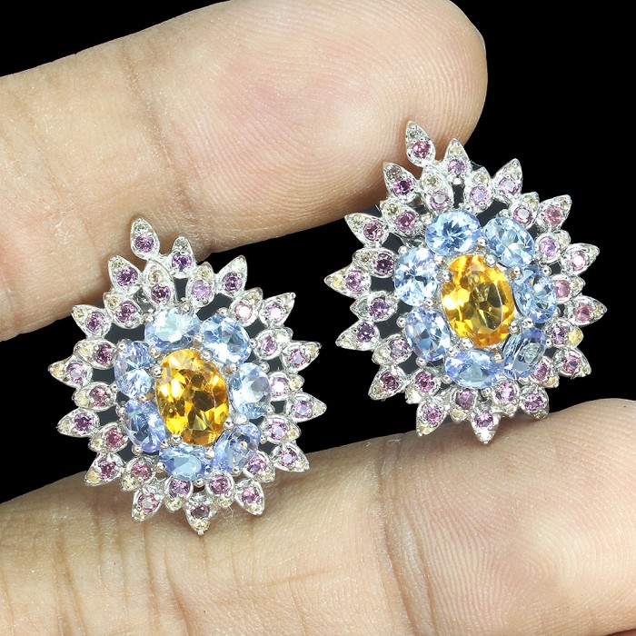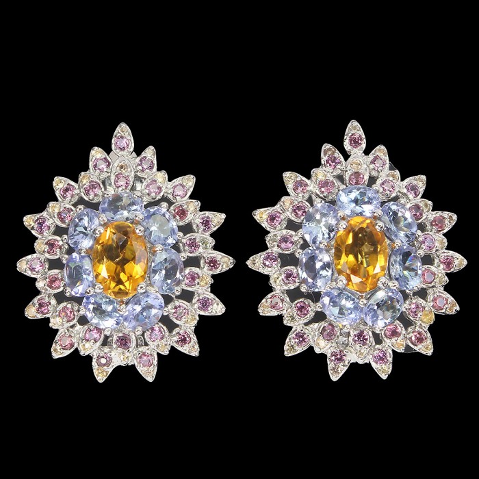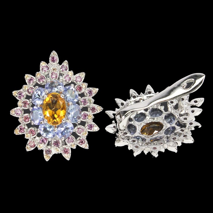 С5206Natural Tourmaline, Tanzanite 17.0 X 17.0 MM.Вага 5.73 гр.Срібло 925 проби покрите білим золотом.Розмір каміння - 4.0 TO 6.0 X 4.0 MM.Чистота - If To Vvs.Обробка - Unheated.Походження - Brazil...