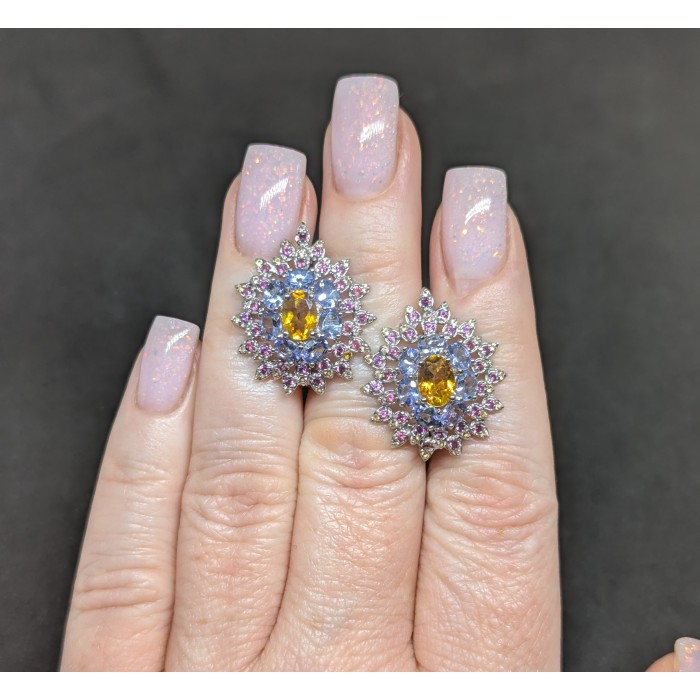 Natural Citrine, Rhodolite Garnet, Tanzanite 24.0 X 20.0 MM.