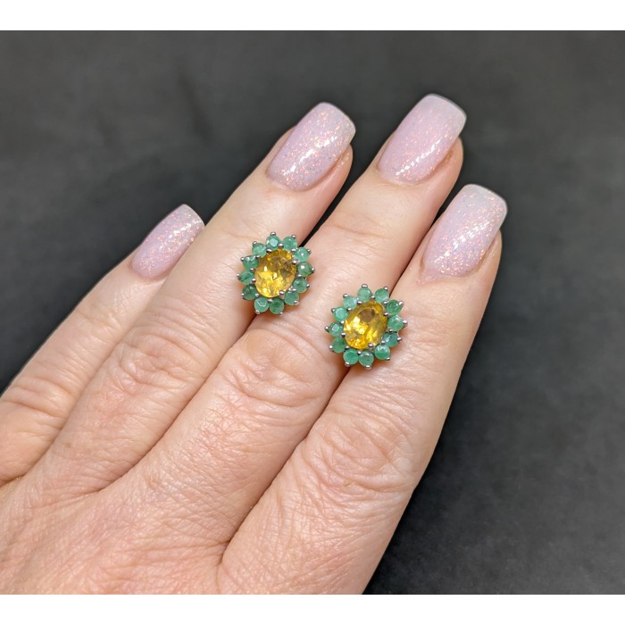 С5579Natural Emerald, Black Spinel 21.0 X 11.0 MM.Вага 3.43 гр.Срібло 925 проби покрите білим золотом.Розмір каміння - 1.0 TO 7.0 X 5.0 MM.Чистота - Transparent.Обробка - Unheated.Походження - Brazil...