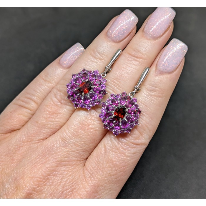 С4603Natural Mozambique Garnet 16.0 X 12.0 MM.Вага 4.87 гр.Срібло 925 проби покрите білим золотом.Розмір каміння - 1.0 TO 9.0 X 7.0 MM.Чистота - If.Обробка - Unheated.Походження - Africa...